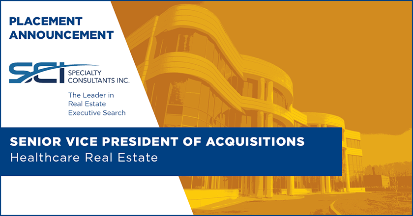 SCI is very proud to announce the successful placement of a Senior Vice President of Acquisitions with a rapidly-growing, entrepreneurial investment management firm focused on the healthcare sector.